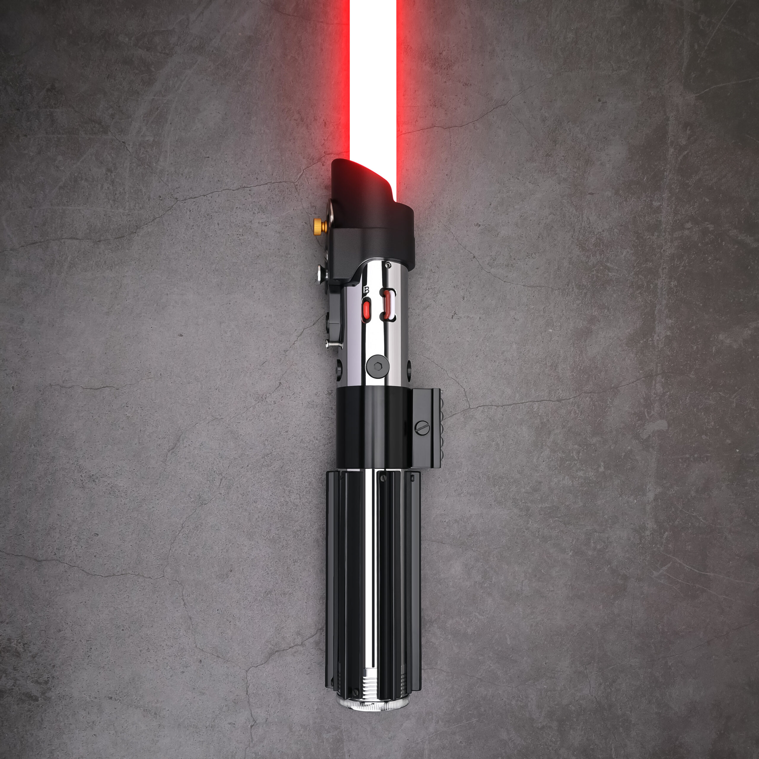 Inspiré par le sabre du méchant le plus iconique du cinéma, Dark Vador, tel qu’on peut le voir dans la saga Star Wars, version Episode V et VI notamment. (réplique non officielle).
